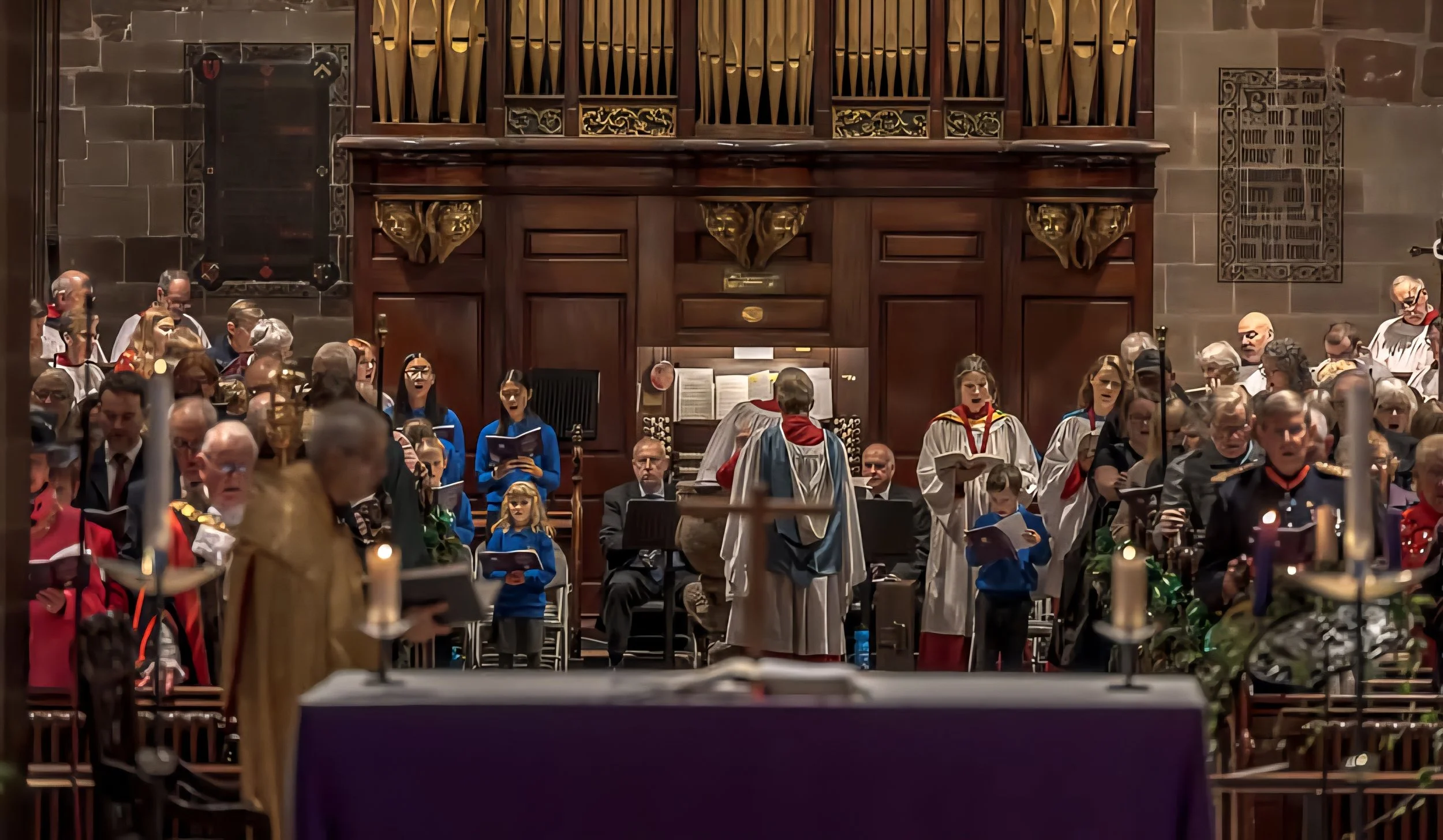 We occasionally have Sunday evening services, which are often Choral Evensong: these are sung services with prayers and music from our choir.